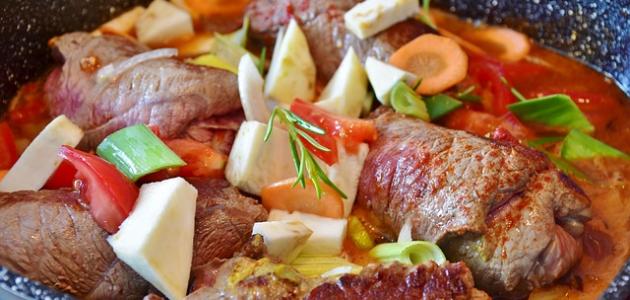 - إضافة اللحم إلى البصل وتقليبه جيداً، ثم إضافة البندورة وقرن الفلفل وتشويح المكونات مع بعضها.