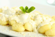 • سكب الخليط في طبق كبير الحجم وتركه حتى يبرد ثمّ تقطيعه إلى قطع بالشكل المفضل وتقديمه.