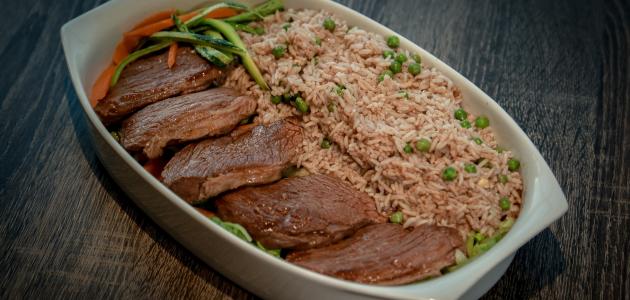 - إضافة اللحم المسلوق إلى القدر ثمّ إضافة الأرز.