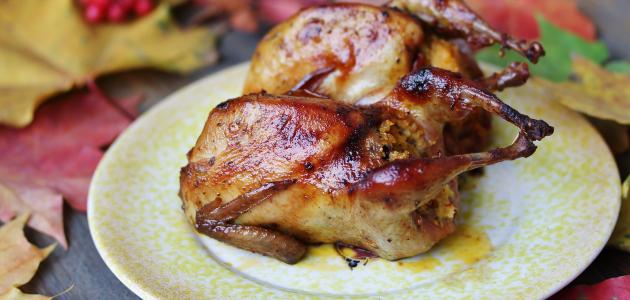 • وضع القليل من الزيت في مقلاة واسعة وتحمير الحمام حتى يقرمش من الخارج و يصبح لون الجلد بني ذهبي.