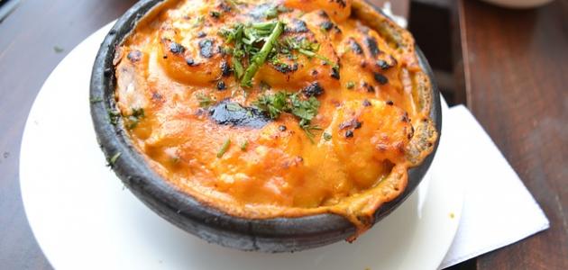 • إزالة الطاجن عن النار وتزيينه بحبوب السمسم واللوز وتقديمه ساخناً مع الخبز.
