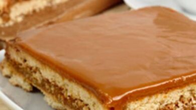 • رصّ العجينة في صينية خبز متوسطة الحجم واحفظها في البراد حتّى تجمد وتبرد، ثمّ قدّمها.