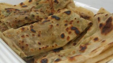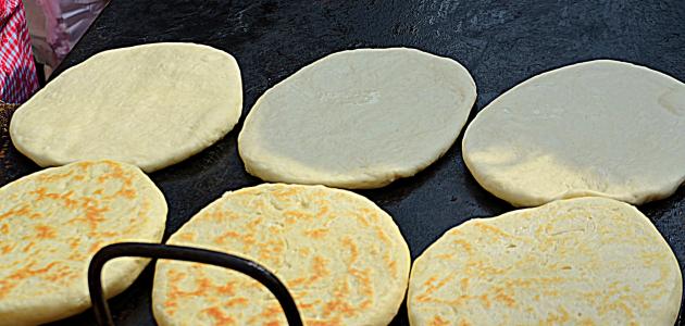 - نقلب العجين إلى الجهة الأخرى حتّى يتحمر من الجهتين، ثمّ نرفعالرغيف من المقلاة، ونضعه على مناديل ورقية حتّى تمتص الزيت الفائض.