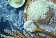 - نغطي العجينة بورقة من النايلون، ونتركها جانباً في منطقة دافئة حتّى ترتاح وتتتخمّر.