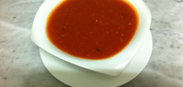 - في خلاط كهربائي، يتم وضع الطماطم المقشرة، وضربها حتى تتحول إلى ما يشبه العصير.