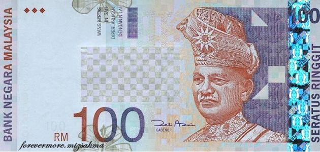 تعتمد دولة ماليزيا على عملتها الرئيسيّة التي تسمّى: رينغيت ماليزيّ، ويرمز لها على الأوراق النقديّة بالرمز (RM)، وتُعرف اختصاراً بـ(MYR). إذ يعادل الدولار الأمريكيّ الواحد ما قيمته 3.9 رينغيت ماليزيّ حسب أسعار الصّرف لعام 2018. وتوجد مجموعة من فئات الأوراقِ النقديّة أصغرها من فئة 1 وأكبرها من فئة 100، وتتوفر فئة 5 و10 و20 و50 من الرينغيت الماليزيّ الورقيّ. أمّا العملة المعدنيّة فتُسمّى سن (Sen)، إذ تعادل العملة الورقيّة الواحدة من الرم 100 سنٍ. أمّا عن تصميم العملة الورقيّة لدولة ماليزيا، فهي تضمّ عناصرَ متنوعة تدلّ على تنوعِ الثقافة والتراث والطبيعةِ في ماليزيا، كما تعبّر عن الفنّ والحرفِ والتقاليد والاقتصاد. ويظهر على فئة (100 RM) مظهران طبيعيان صُنفا حسب منظمة اليونسكو على أنّهما مواقع تراث عالميّ.[٢][٣]