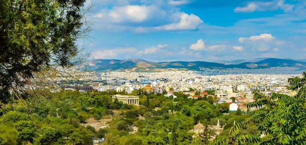 تقع مدينة أثينا (بالإنجليزيّة: Athens) التاريخيّة مهد الحضارة الغربيّة في اليونان، على مدخل بحر إيجة (بالإنجليزيّة: Aegean)، وتبعد ثمانية كيلومترات عن خليج فاليرون (بالإنجليزيّة: Phaleron)،[١] وهي تمتدُّ على مساحة تُقدَّر بتسعة وثلاثين كيلومتراً مُربَّعاً تشغل المنطقة الحضريّة منها نحو أربعمئة وسبعة وعشرون كيلومتراً مُربَّعاً، ويجدر التنويه إلى أنّ أثينا تمتلك ميناءً يُطلَق عليه اسم ميناء بيرايوس (بالإنجليزيّة: Port of Piraeus)، وهو يبعد ثمانية كيلومترات عن السهل الساحليّ الذي يُطوِّق المدينة.[٢]