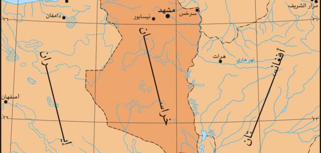 على امتداد التاريخ كانت منطقة خراسان منطقةً واسعةً جداً من الناحية الجغرافيّة؛ حيث كانت تتضمّن أجزاءً متنوّعةً وواسعةً من أفغانستان (الشمال الغربي)، وتركمنستان، بالإضافة إلى خراسان الحاليّة (مقاطعة خراسان. أمّا مقاطعة خراسان الحالية؛ فهي التي تقع في الشرق من إيران، وهي منطقة أصغر من الناحية الجغرافيّة القديمة التي كانت موجودةً فيما مضى.