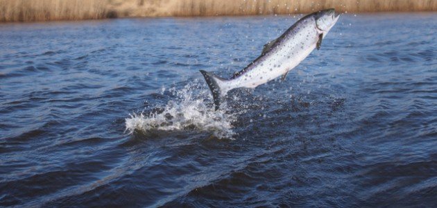 - تُوضع أسماك السلمون في خزانات المياه العذبة لتقوم بفقس بيوضها.