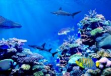 - الجزء العميق: يتراوح عمقه ما بين 500-1000م، ويتميز بمناطق الشعاب المرجانيّة غير المنتظمة.