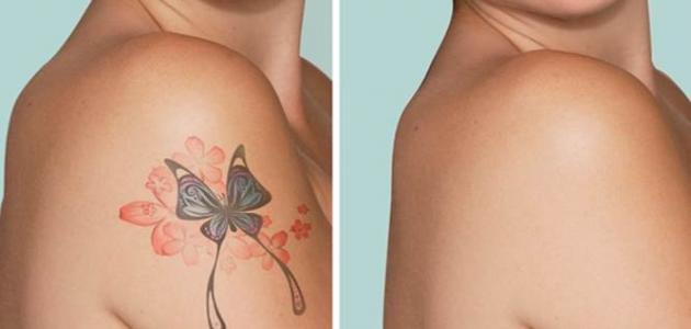 تستخدم أشعة الليزر في إزالة أصباغ الوشم، وتعتبر وسيلة حديثة، حيث تعمل على إنتاج نبضة ليزر قصيرة جداً في الناتو ثانية في الجلد؛ مما يؤدي إلى تبخر بعض أحبار الوشم، وتفتت البعض الآخر إلى الآلاف من الجزيئات الصغيرة، فيقوم الجلد بالتخلّص منها بأمان، وفي حال تعرّض منطقة الجسم المراد إزالة الوشم عنها، لأشعة الشمس في فترة قريبة؛ لزيادة سمرة الجسم، ينتظر بضعة أسابيع، حتى تتلاشى سمرة الجسم؛ لأن هذه السمرة تعمل على امتصاص بعض طاقة أشعة الليزر المعدّة لخلايا الوشم المصطبغة، ويجب تغطية الوشم بضمادة أو بالملابس قبل العلاج، للحدّ من تكوّن زائد لمادة الميلانين الذي من الممكن أن يؤدي إلى تلوّن الجلد، ويتمّ وضع كمادات الثلج أو الكريمات المثلجة أو المخدّر الموضعي، قبل جلسة العلاج بثلاثين دقيقة، وأحيانا يتم العلاج دون وضع مخدر.