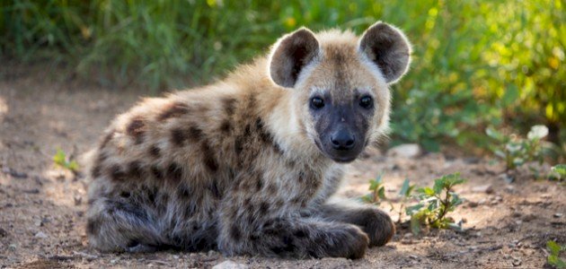 - تولد الضباع المرقطة باللون الأسود المائل إلى البني.