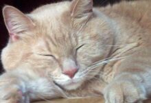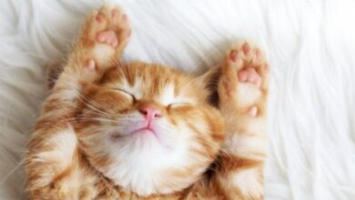 - أنين القطة عند الاستلقاء.[٤]