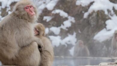 - يعود صغير الجمل مع والدته إلى قطيع الجمال بعد مرور أسبوعين على الولادة.