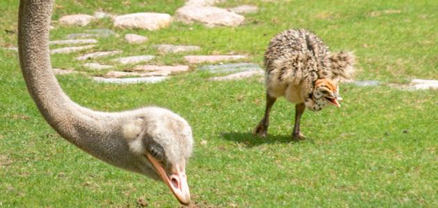 - يمتلك صغير النعام رقبة طويلة مكشوفة بلا ريش.