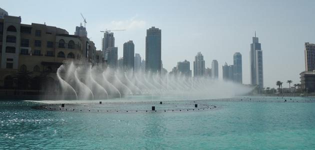 • نافورة دبي (بالإنجليزيّة: Dubai Fountain): أطول نافورة راقصة في العالم، حيث يصل ارتفاعها إلى أكثر من 274.32م، وتتكون من خمس حلقات دائرية مُختلفة الحجم، وقوسين، حيث تحتوي كل منها على ثُقوب لضخ المياه، وتقع على بُحيرة أمام برج خليفة، وتُعدّ نافورة موسيقية إذ يتميز تصميمها بأنه يحتوي على 50 جهاز لعرض الألوان كاملة، و25 جهاز عرض، بالإضافة إلى أكثر من 6,600 مصباح، حيث تقوم معاً بإنشاء نِظام مرئي يضم أكثر من 1000 تعبير مائي مختلف، ويصل ضخ المياه في النافورة إلى أكثر من 83279 لتر في الهواء تقريباً.[٩]