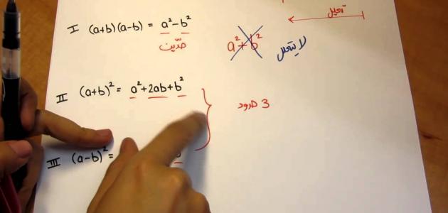 2. اتباع القانون الرياضي مع الالتزام بإشارات الجمع والطرح أ3 + ب3 = (أ + ب) ( أ2 – أ ب + ب2).