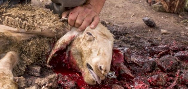• أن يجعل الذبيحة على جنبها الأيسر مع ترك الرجل اليمنى لتتحرك عند الذبح براحتها.