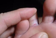 - تُغسل البشرة بالماء.
