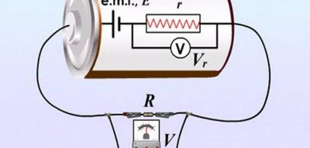 القوة الدافعة الكهربائية= فرق الجهد في الخلية+(التيار×المقاومة الداخلية في الخلية).