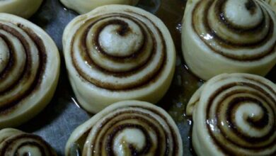 • لفّي العجينة بشكلٍ إسطوانيٍ، ثمَّ قطّعيها، وصُفّيها في صينيةٍ مدهونةٍ بالقليل من الزبدة.