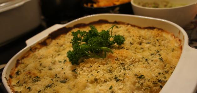 - إخراج طبق القرنبيط بالبشاميل من الفرن وتقديمه مباشرة.