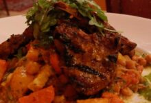 • تزيين الطبق بقطع التعمير وتقديمه بجانب الصلصة.