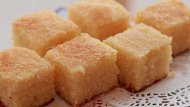 • إخراج قالب الكيك من الفرن، وصبّ القطر الدافئ عليه، وتركه حتى يبرد.