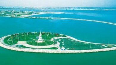 هي جزيرة صناعيّة تم إنشاؤها من قبل دولة قطر، تقع في الخليج العربي على بعد 15 كيلومتراً من الدّوحة، مناخها شديد الحرارة صيفاً حيث تصل درجة الحرارة فيها إلى 50 درجة مئويّة، ويكون معتدلاً في نوفمبر وحتى أيار ومايو تقريباً، وقد تصل درجة الحرارة فيها شتاءً إلى 5 درجات مئويّة.