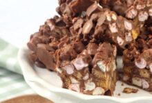 - ترتيب مكعبات الراحة بالكاكاو في طبق مناسب للتقديم.