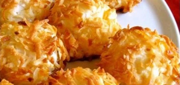 - نضع كرات جوز الهند في صينية مدهونة بالزيت ومفرودة بورق الزبدة ونرتبها بشكل مناسب ثم ندخلها الفرن إلى أن تتحمّر الكرات وتكتسب اللون الذهبي.