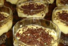 2- في وعاء آخر نحضر الجلي , حسب التعليمات ومنْ ثمَّ نصبُّه في أكواب التقديم , بدون أنْ نملأها .