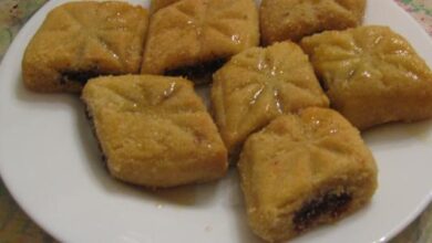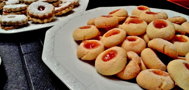 - فرد القرص الثاني وتقطيعه بنفس الطريقة وبنفس العدد مع عمل فراغ في الوسط على شكل مختلف حسب الرغبة، ويمكن تشكيله إلى قلب صغير أو أشكال حيوانات صغيرة، ووضعها في الصواني.