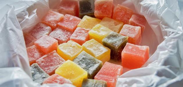 • وضع الخليط مرة أخرى على نار هادئة الحرارة والترك ليغلي بعناية لمدة ستون دقيقة تقريباً حتى يصبح مثل الكراميل الشفاف ثم إضافة ماء الورد وقطرات قليلة من ألوان الطعام والخلط جيداً.