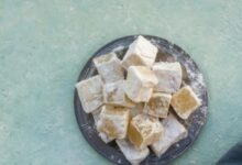• مئة وثلاثون غرامًا من الزبدة الباردة المفرومة إلى مكعبات.