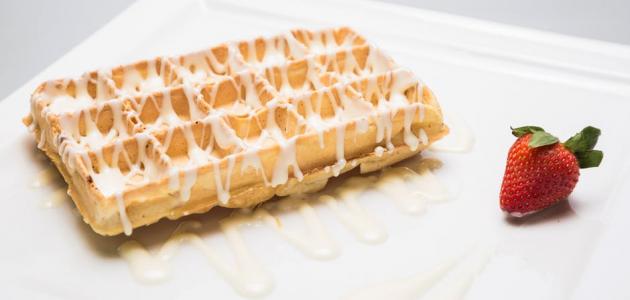 قلب قرص الوافل على الوجه الثاني والانتظار لعدة دقائق حتى ينضج ويصبح لونه ذهبي.