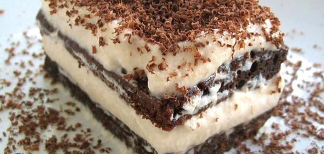 • نحضر بايركس ونرتب فيه طبقة من قطع البسكويت السادة، ثم نسكب كمية من المزيج فوقه، ونرتب مرة ثانية طبقة من البسكويت، ثمّ نسكب باقي المزيج.