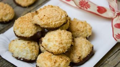 - زينية بجوز الهند المحمص، وضعيه في الثلاجة حتى يتماسك، قطعيه وقدميه بارداً.
