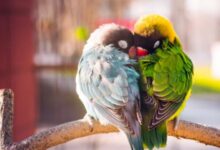 تبدأ طيور الحب من الاقتراب من بعضها، وقد تظهر وكأنها متلاصقة، فهذا يعني أنّ موسم التزاوج قد اقترب.