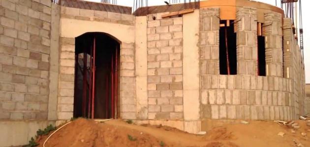 • بناء الجدران، باستعمال الطوب والحجر وصب المنطقة بينهما بالباطون.