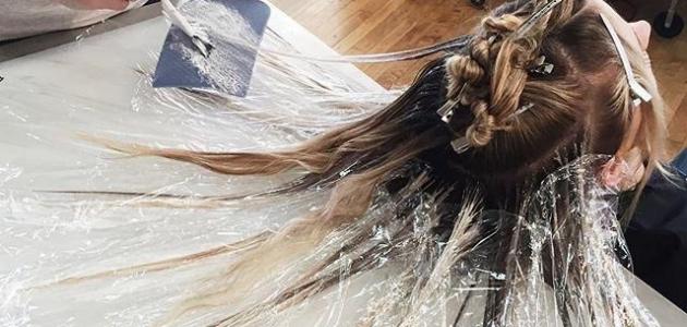 - فصل الخصلة عن بقية الشعر باستخدام مشابك بلاستيكية بحيث لا تلامس الشعر بعد وضع الصبغة عليها.