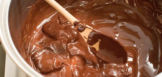 - نضيف قطع الشوكولاتة، ونحرك باستمرار حتى تذوب جيداً.