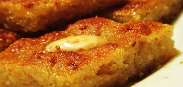 - تُدهن الصينية بالطحينة ثم يتم فرد العجينة فيها وتُدخل للفرن حتى تنضج.