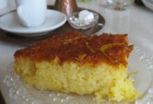 - تعاد إلى الفرن لمدة ربع ساعة تقريباً، ثُم تخرج وتشرّب فوراً بالقطر الدافىء.