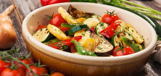 وضع القليل من زيت الزيتون، وجبن البارميزان على وجه الخضراوت.