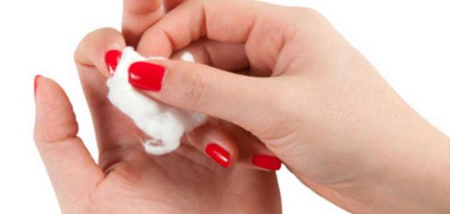 - وضع الأسيتون في وعاء عميق، ثمّ يتم غمر كرة قطنية فيه.