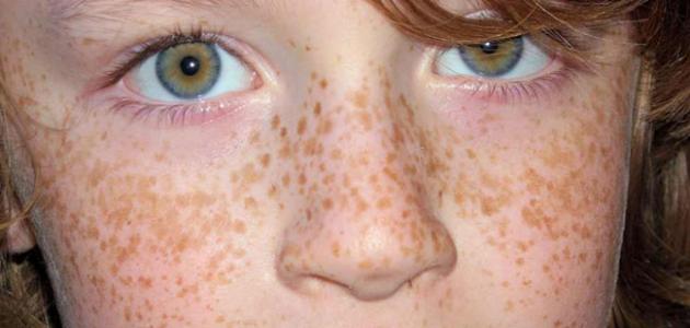 النمش: هو عبارة عن بقع بنية اللون تظهر على البشرة البيضاء الرقيقة، وهو ما يعرف بتصبغ الميلامين ويعود السبب الرئيسي لوجود الجين السائد المستقبلي، وهو الميلانوكوروتين ويكثر ظهوره بمنطقة أعلى الخدين وعلى الأنف والجبين.