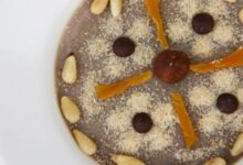 • نسكب الشعيرية في طبق التقديم، ونُزينها بالمكسرات، والقرفة، وجوز الهند.