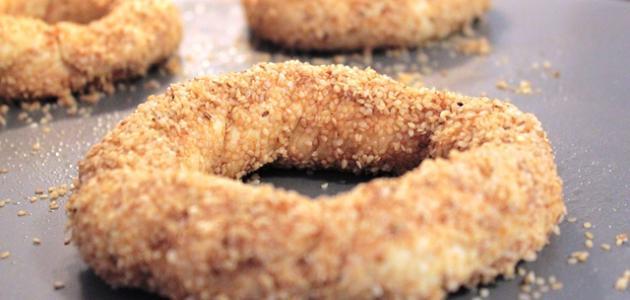 - نثر الكمية المتبقية من السمسم على وجه الكعك، ثم إدخاله إلى فرن متوسط الحرارة لمدّة عشرين دقيقة أو حتى يحمر.