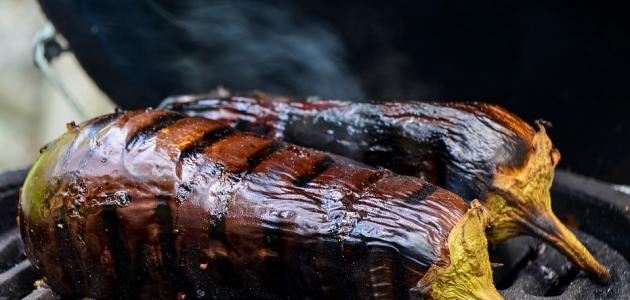 • وضع حبة الباذنجان على ورقة الخبز في صينيّة، ويتمّ ثقبها بالشوكة، ثمّ توضع في الفرن لمدّة مابين(30-40) دقيقة.